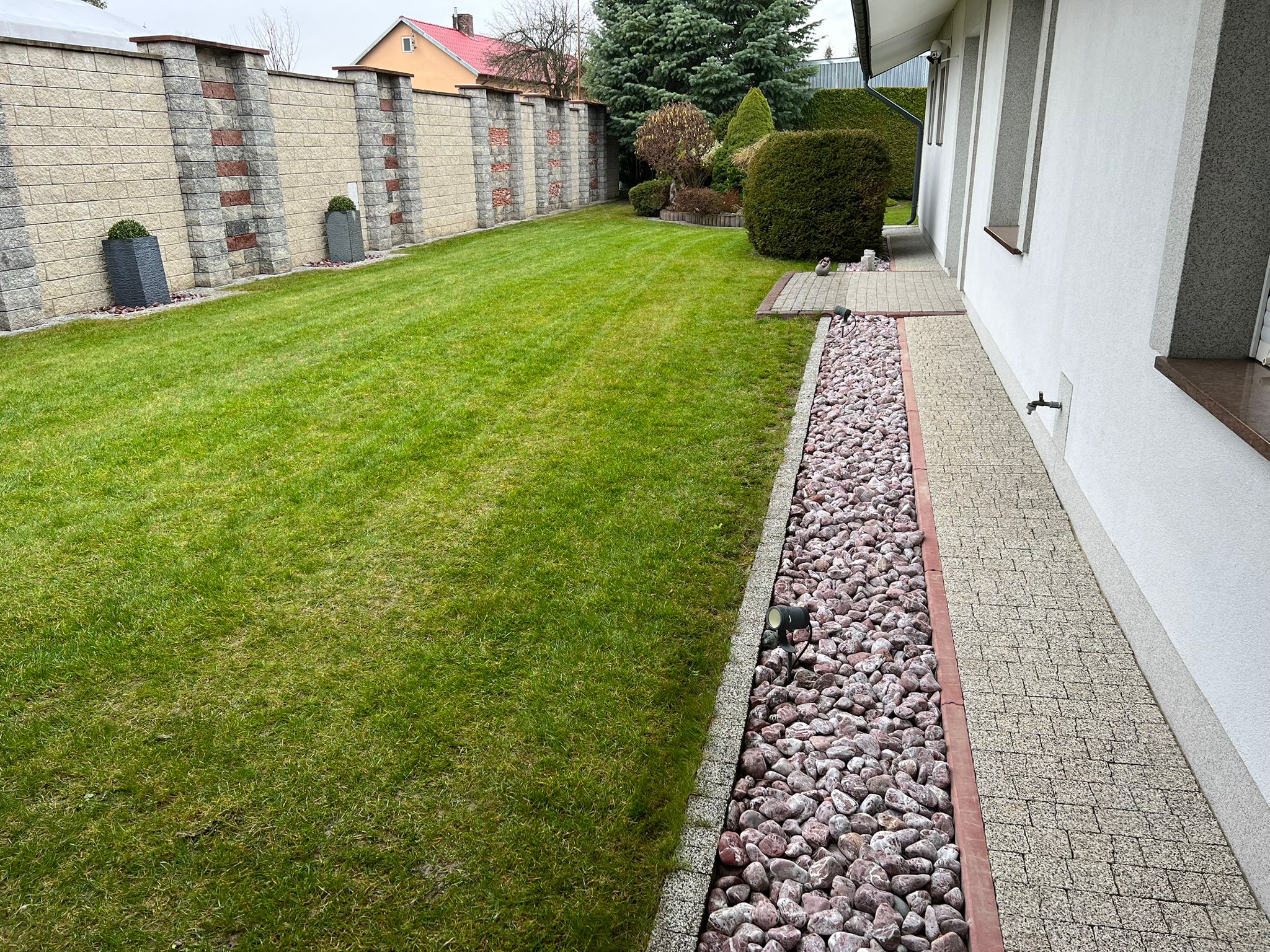 Ogród – trawniki, rabaty, kwiaty oraz drzewka owocowe